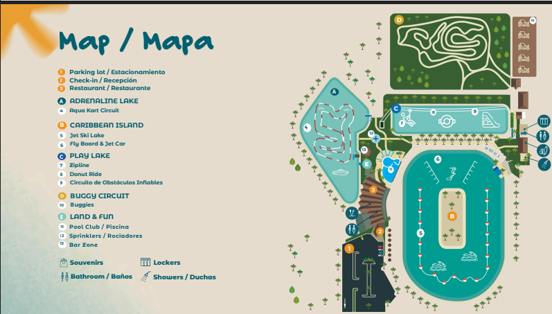 Un chapuzón de adrenalina! Con nuestra experiencia Aqua Splash, puedes disfrutar uno de nuestras emocionantes atracciones para un dia balanceado entre adrenalina y relajación. Elige una de nuestras atracciones: Jet Ski, Aqua Karts, o un electrizante recorrido en Buggy. ¿Quieres más? Atrévete con el divertido Donut Ride, conquista el Zipline desde las alturas, y supera el emocionante desafío de nuestro Circuito de Obstáculos Inflables.